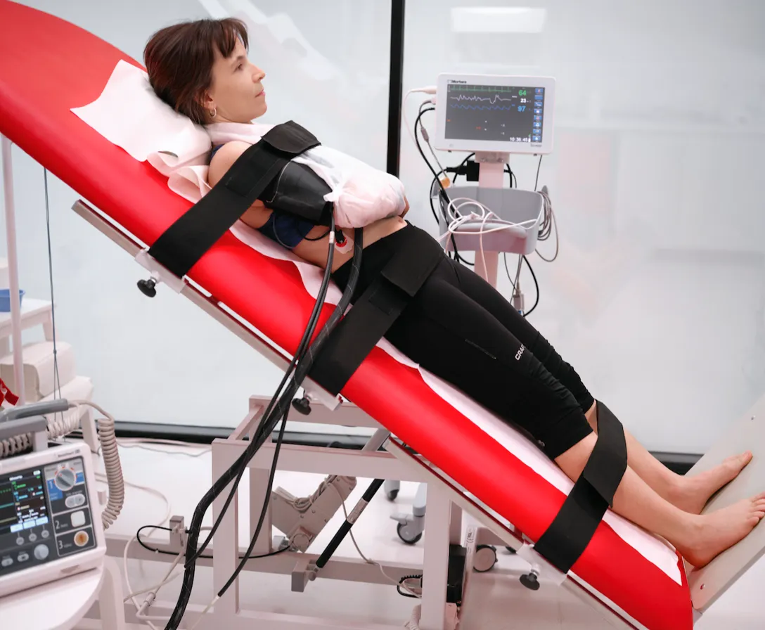 Test na nakloněné plošině trvá 45 minut a jeho cílem je odhalit, zda při specifické poloze není ovlivněno vědomí pacienta poruchou srdečního rytmu (arytmií) nebo rychlým poklesem tlaku.